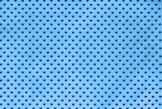 Gift wrapping paper with blue hearts, background. Color of the year 2020 Classic Blue toned