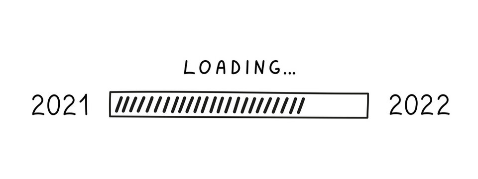 Load bar 2022 new year in doodle style, vector illustration. Hand drawn loading symbol, black isolated element on a white background. Sketch progress bar for ui design