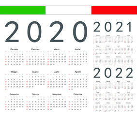 Set of Italian 2020, 2021, 2022 year vector calendars
