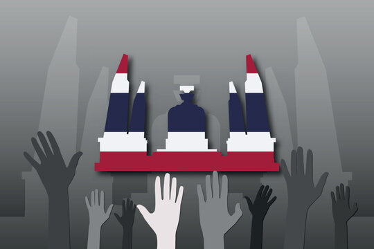 Free vector thailand elections with democracy monument.  people character with box for vote and ballot papers.