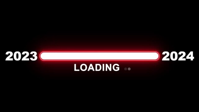 New year 2024 loading bar animation Year changing from 2023 to 2024. Loading bar from 2023 to 2024 new year transfer animation. Advance happy new year, annual plan, growth strategy, business planning.