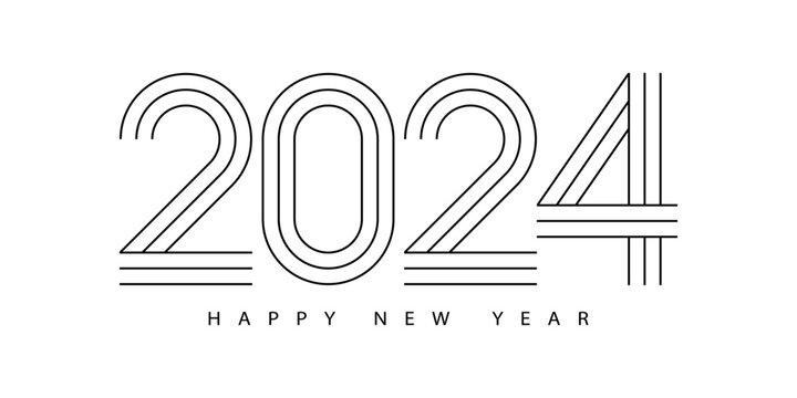 2024 Happy New Year. 2024 modern text line abstract vector design.