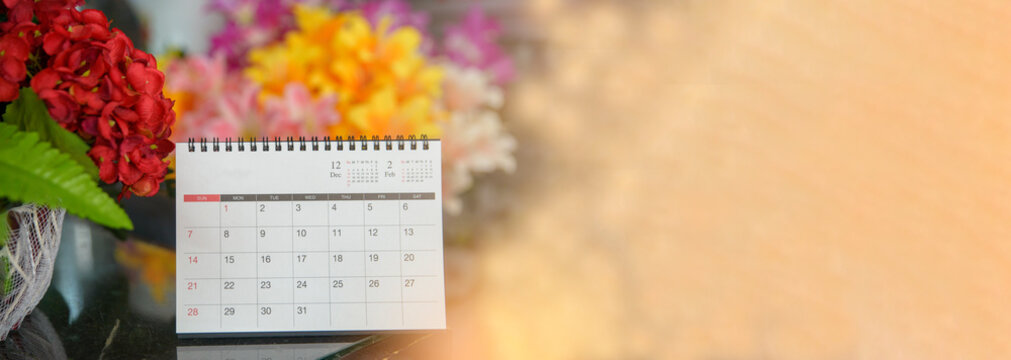 Banner of 2024 Calendar desk placed on business office table. Desktop Calender for Planner to plan wedding agenda, timetable, appointment, organization, management each date, month, and year.