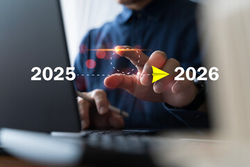 Business planning concept with transition from 2025 to 2026 showing future strategy and technology growth