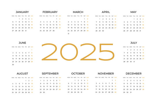 Calendar template 2025 creative minimal business monthly. Desk, wall calendar for print, digital calendar or planner. Week start on Monday. Simple modern annual calendar layout design element. Vector.