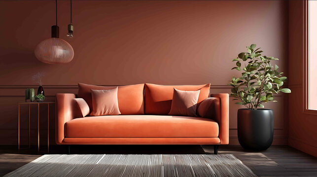 Contemporary living room with sofa and wall in 2025 trend color stylish and modern aesthetic