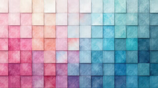 Colorful gradient mosaic wall featuring blue and pink tiled patterns. trending colors spring summer 2025