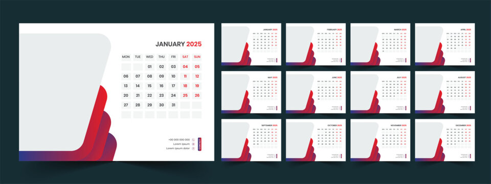 Calendar template 2025 creative minimal business monthly. Desk, wall calendar for print, digital calendar or planner. Week start on Monday. Simple modern annual calendar layout design element. Vector.