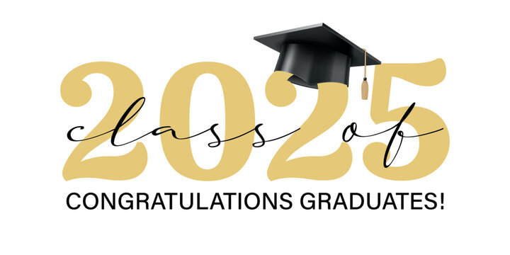 Class of 2025 Graduation Design with Cap and Congratulations Message, perfect for announcements, social media posts, and banners, vector illustration