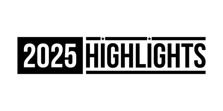 2025 highlights with stars, business or personal review, year best moments and events, final or interim results of the year, vector icon isolated on white background