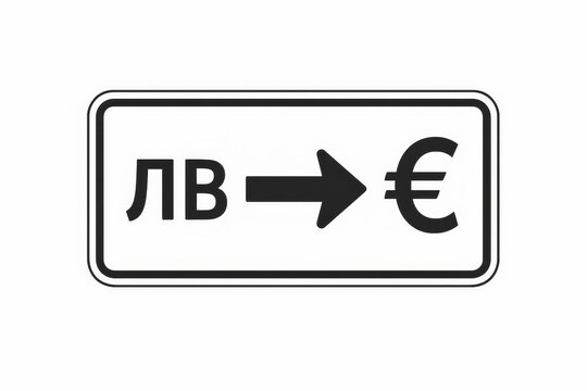 Bulgarian lev to euro transition symbol with arrow showing currency change for 2026 monetary adoption.