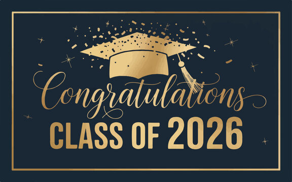 Congratulations class of 2026 with graduation cap and diploma in a gold frame
