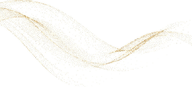 Abstract Shiny Gold Glitter Wave design element. Isolated PNG Design Element. Merry Christmas and Happy New Year Decoration.Transparent Background.  For invitation and greeting card BG