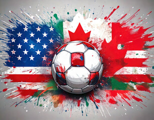 Flags of the United States, Mexico, and Canada together representing North American unity and the 2026 football championship