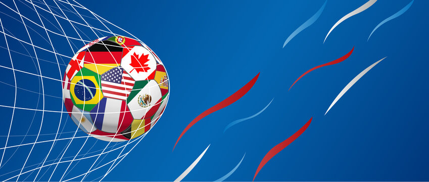Soccer banner 26, bright colors, vector illustration. Sports competitions in USA, Canada and Mexico 2026
