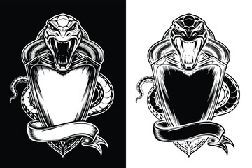 Vintage soccer badge template with blank ribbon for text edit. Retro football emblem t-shirt design with grunge texture. Monochrome engraving style vector illustration.
