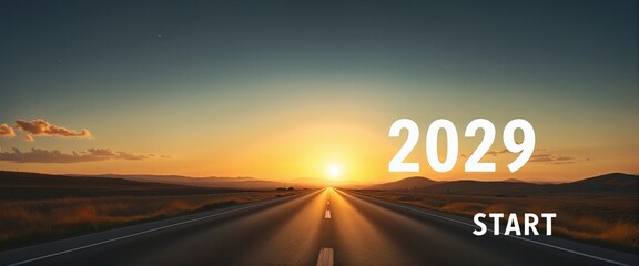 traffic on highway at sunset year 2029 start