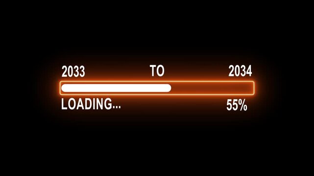 Glowing Orange Progress Bar Loading from 2033 to 2034 on Black Background