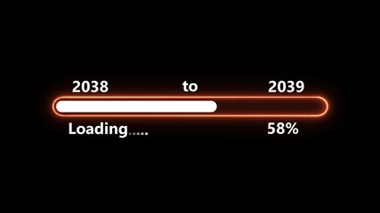 Neon loading bar with years 2038 and 2039 on black background progress bar progress