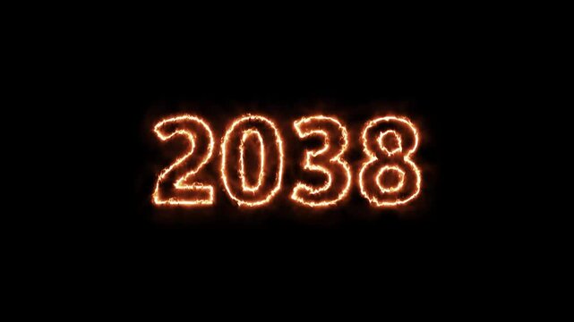 video animation - abstract fire of the numbers 2038 - represents the new year - motion animation - happy new year concept .4k motion video.