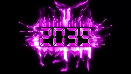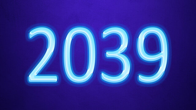 Glowing neon 2039 Happy New Year text with clean neon outlines and subtle. important year, important date 2039. Educational mathematics 2039 animation on background...