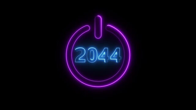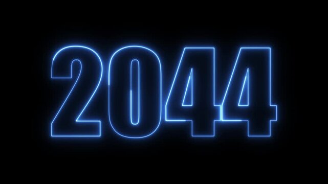 2044 neon line text. Abstract 2044 neon text animation, Glowing neon number text background 4k animation. Concept of counting years.