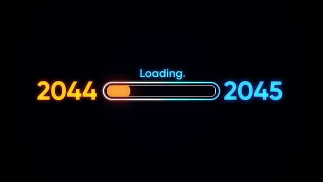 New year 2045 loading bar animation Year changing from 2044 to 2045. Loading bar from 2044 to 2045 new year transfer animation. Advance happy new year, annual plan, growth strategy, business planning.