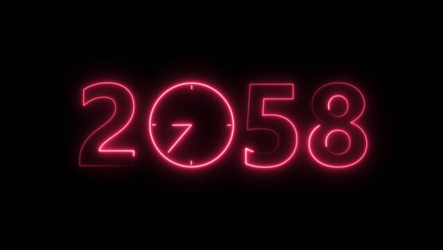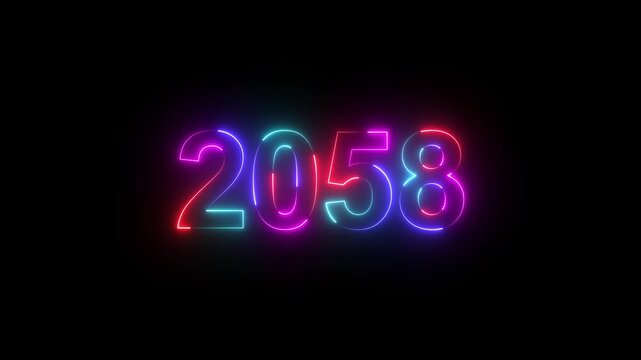 Glowing neon 2058 happy new year 2058 animated text new year on black background. Abstract 2058 neon text animation,