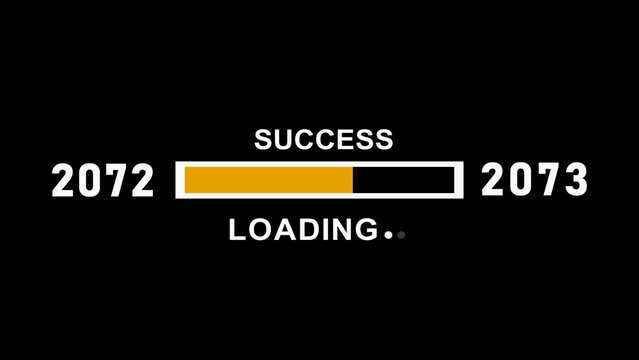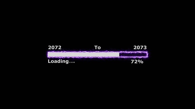 Abstract New year 2073 loading bar animation, Loading bar from 2072 to 2073 new year transfer animation. Almost reaching New Year on black background. Welcoming the happy new year 2027. alpha channel