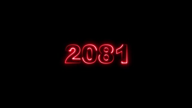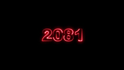 2081 neon line text. Abstract 2081 neon text animation, Glowing neon number text background 4k animation. Concept of counting years.