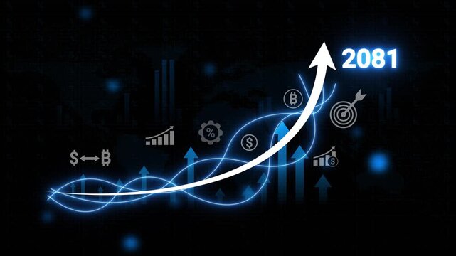 Upward financial trend graph with year 2081 and digital currency icons finance growth