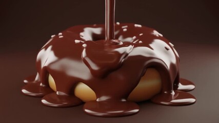 Delicious Chocolate Glazed Doughnut with Sprinkles Drizzled with More Chocolate on Brown Surface Keywords: doughnut, donut, chocolate, glaze, icing, dripping, sweet, dessert, pastry, baked, food