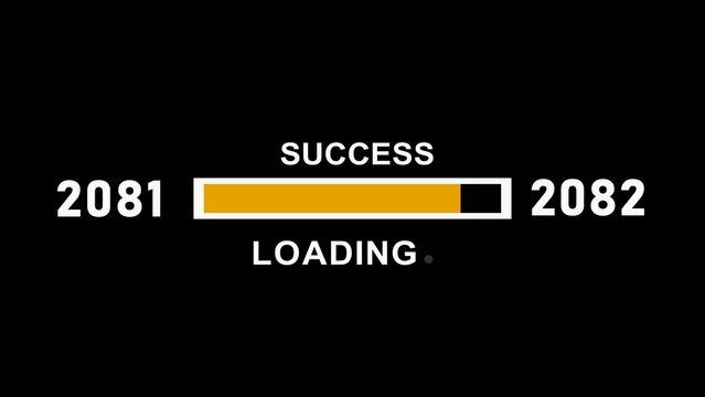 New year 2082 loading bar animation Year changing from 2081 to 2082 . Loading bar from 2081 to 2082 new year transfer animation. Almost reaching New Year on black background.