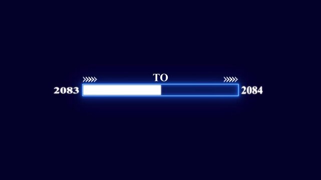 Happy New year 2084 loading bar animation. Year changing from 2083 to 2084 . Loading bar from 2083 to 2084 new year transfer animation. arrow direction change new year.