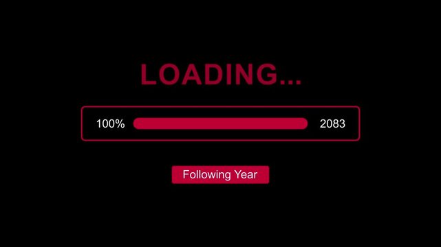 Following new year 2083 with loading bar system animation on black background. Coming and year change concept. flowing textures, symbolizing the upcoming year and new beginnings in a red visual style