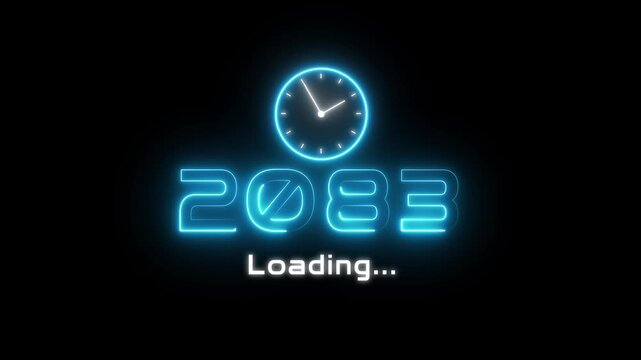 Neon loading new year text animation. Neon counting years. New year 2083 celebration text animation.
