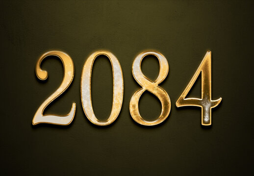 Old gold effect of 2084 number with 3D glossy style Mockup.
