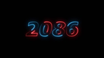 2086 Sal neon number text icon background animation. Happy new year 2086 background 4k video.