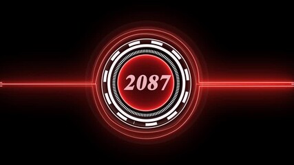 Digital countdown from year 2086 to 2087 with loading bar, technical data processing animation for future time planning
