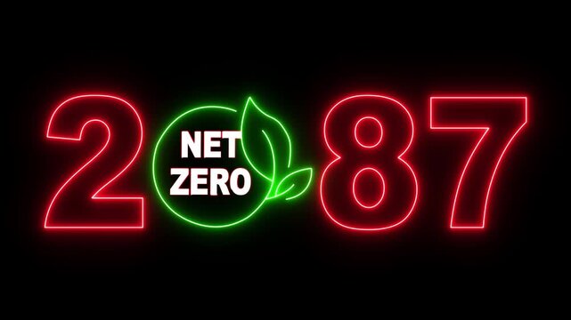 Net zero emission and carbon neutral concept with Net zero icons and 2087 year change concept. net zero greenhouse gas emissions target Climate neutral long term strategy on a black background.