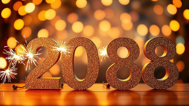 New year 2088 loading bar animation. Seamless loading bar animation illustrating the transition from 2025 to 2088. Bright progress bar with alpha channel, ideal for New Year greetings.
