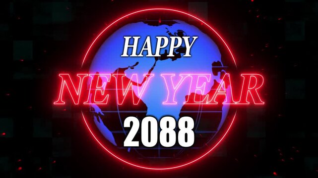 Animation of happy new year 2088 red letters. Alpha Channel and grid and global Screen background. A beautiful animated Happy new year background with abstract element and textures