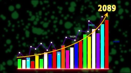 Business growth concept in allusive graph chart showing marketing sales profit increasing to future target .Excellent financial status of corporate business rise up, 2089 new year business background