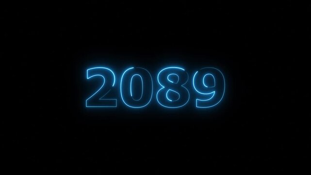 Neon light countdown 2089 Sal number background 4k animation. Happy new year 2089.