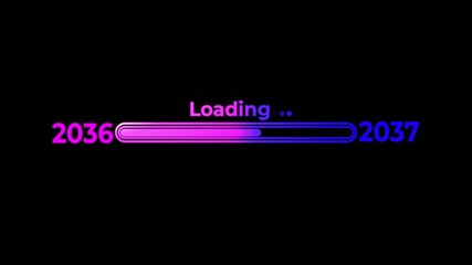 Loading bar from year 2036 to 2037 with neon glow effect progress future.Happy new year loading bar.
