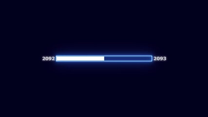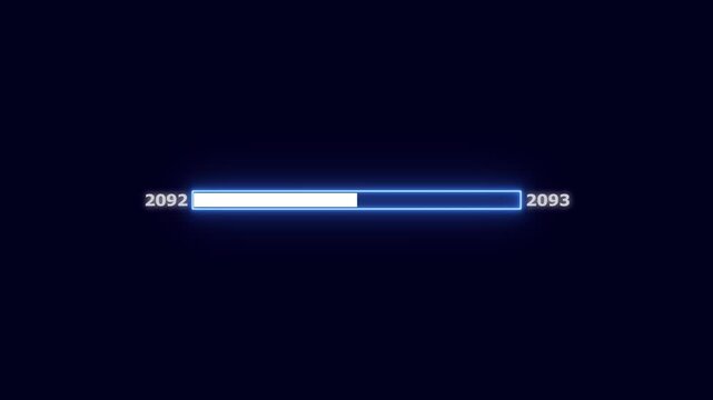 Futuristic Neon Progress Bar Showing Year 2092 to 2093 Loading bar glowing