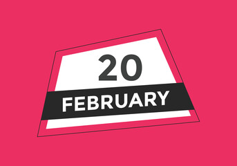 February 20 Calendar icon Design. Calendar Date 20th February. Calendar template