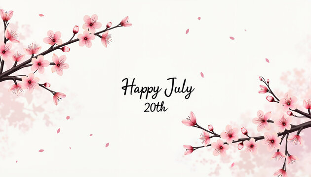 Happy July 20th celebration with blooming cherry blossoms in a delicate floral design