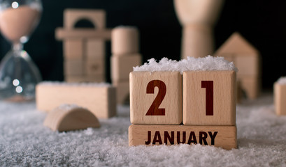 January 21 written with wooden blocks