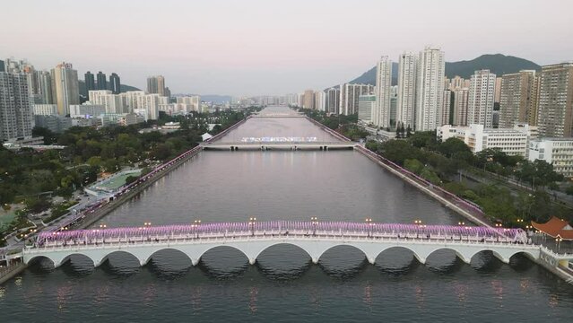 Shing Mun River, Sha Tin, Hong Kong during sunset 21 Dec 2022